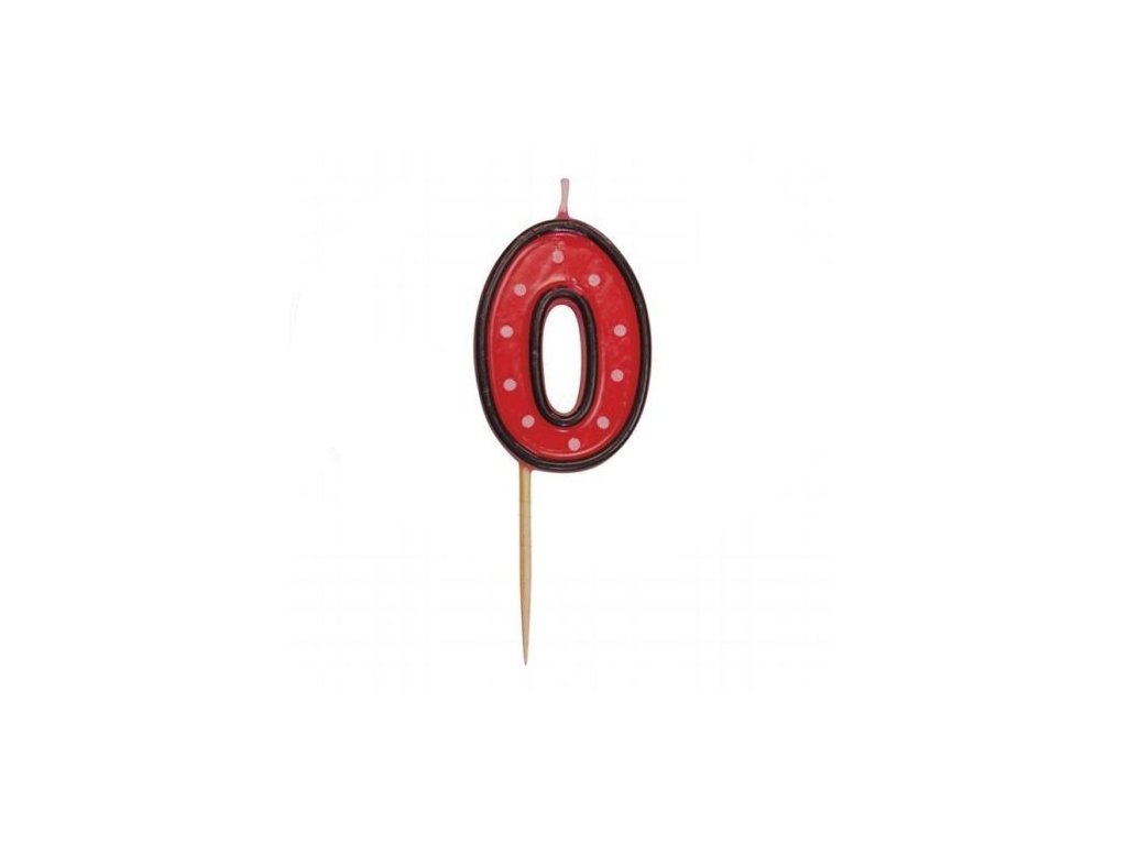 Dortová svíčka číslice ČERVENÁ s puntíky - 0