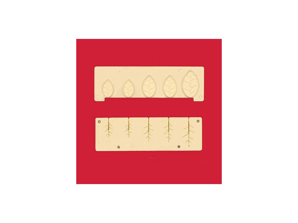 2-dílná sada pro tvorbu lístků k růžím. Je zároveň vykrajovačem i žilkovačem. Díky prostoru pro vložení drátku tak lze během jediného úkonu "vymodelovat" kompletní lístek. Na formě je několik velikostí lístků (celkem 5 lístků ve 3 velikostech: 2,5 - 3 - 4 cm),