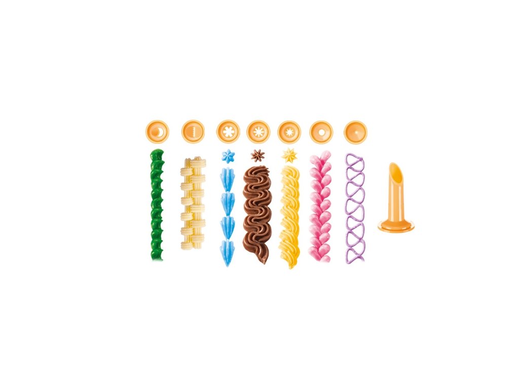 Je dodávána s 8 tryskami, se zdobičkou DELÍCIA snadno připravíte libovolné krémové, pěnové nebo majonézové dekorace. Zdobičku lze snadno rozložit a trysky rychle vyměnit.