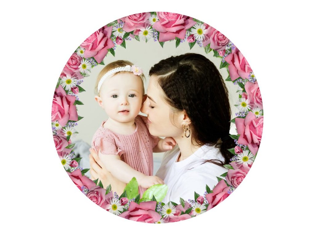 Tisk na jedlý papír - kulatý - v květinovém rámečku